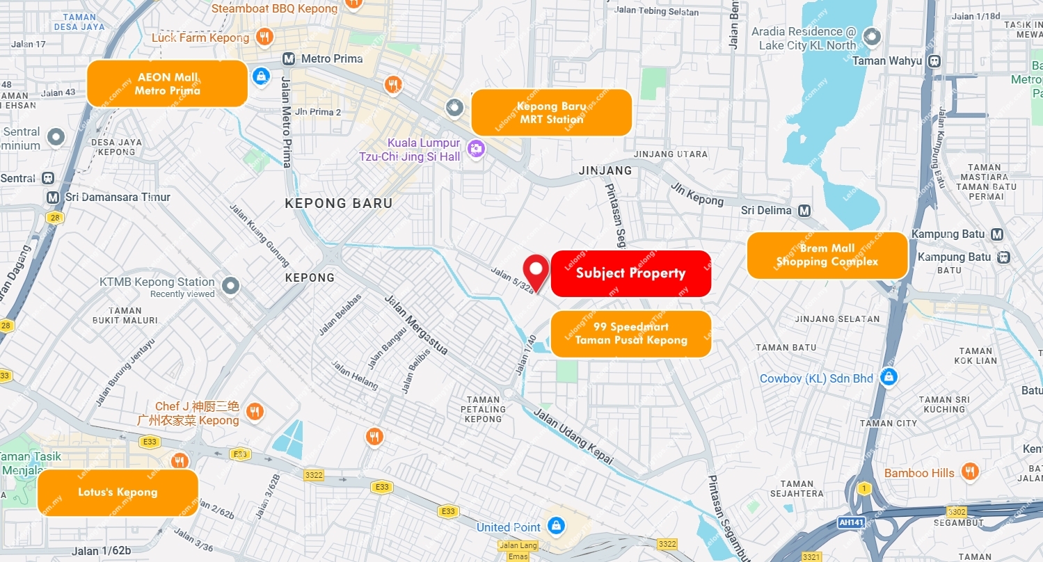 Property Address: Unit No., Jalan 7/40, Taman Pusat Kepong, 52100, Kuala Lumpur