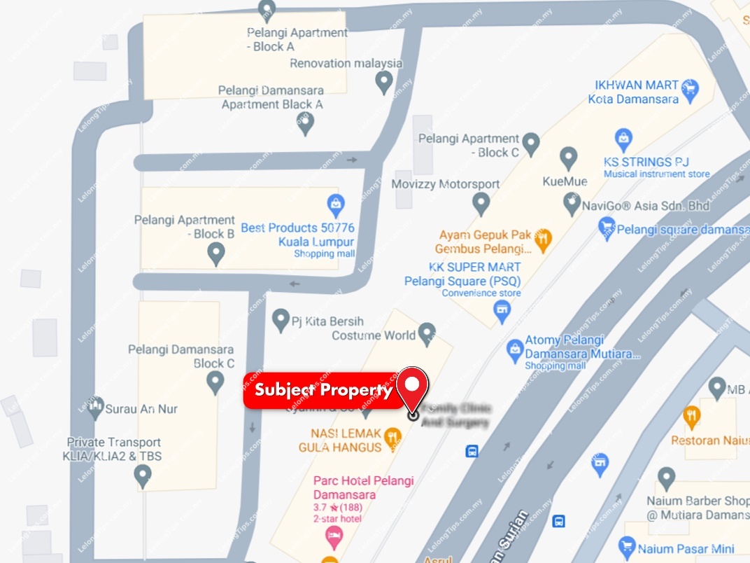 Property Address: Unit No., Block B, Pusat Perdagangan Pelangi, Pelangi Damansara, PJU 6, Persiaran Surian, 47800 Petaling Jaya, Selangor